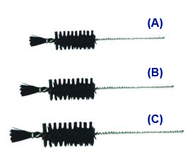 Brushes for cleaning laboratory equipment, variable size and wide brushes for easy cleaning.