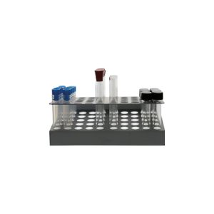 Gradilla en Z de aluminio con capacidad para 50 tubos con diámetro de 12mm. Esencial para mantener erguidos los tubos durante el trabajo, almacenaje o hervir en baño maría.