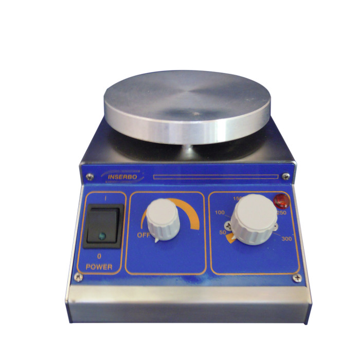 Agitador magnético con placa calefactora, construida en aleación de aluminio y revestida con una protección especial, que asegura una distribución uniforme del calor sobre toda la superficie, de óptima resistencia a los agentes químicos agresivos.