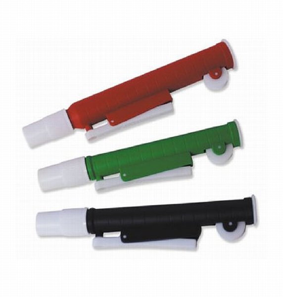 Los aspiradores para pipetas constituyen una solución eficaz y asequible para el pipeteo cómodo y seguro de líquidos de cualquier naturaleza. Su diseño ergonómico evita movimientos molestos de la mano y permite aspirar y dispensar líquidos sin cambio de posición manual y con el único movimiento del pulgar. La rueda de carga estriada puede ser girada para coger o dispensar líquido con precisión, mientras que la palanca lateral permite el vaciado rápido y automático de la pipeta. Gracias a su terminación en goma, pueden ser acoplados a pipetas de diversas capacidades de vidrio o plástico. Los aspiradores se presentan en varios colores según el volumen máximo que pueden aspirar, son resistentes a la acción de ácidos y bases, y fácilmente desmontables para su limpieza.