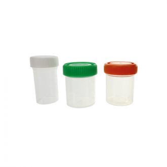 Frasco fabricado en polipropeleno, autoclavable, para recogida de muestras (50ml máximo). Tapa de rosca y cierre hermético. Graduado para visualización rápida de volumen en el contenedor.