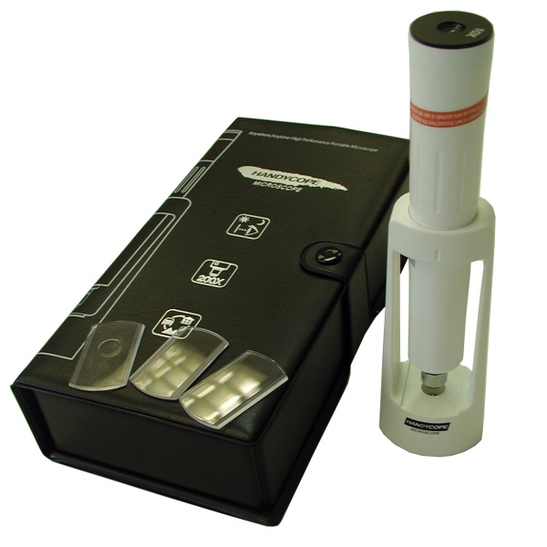 Handycope microscopio portátil a baterías con 200 aumentos.
