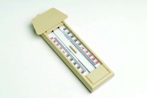 Maximum and minimum thermometer with roof to avoid dirt coming from higher levels.