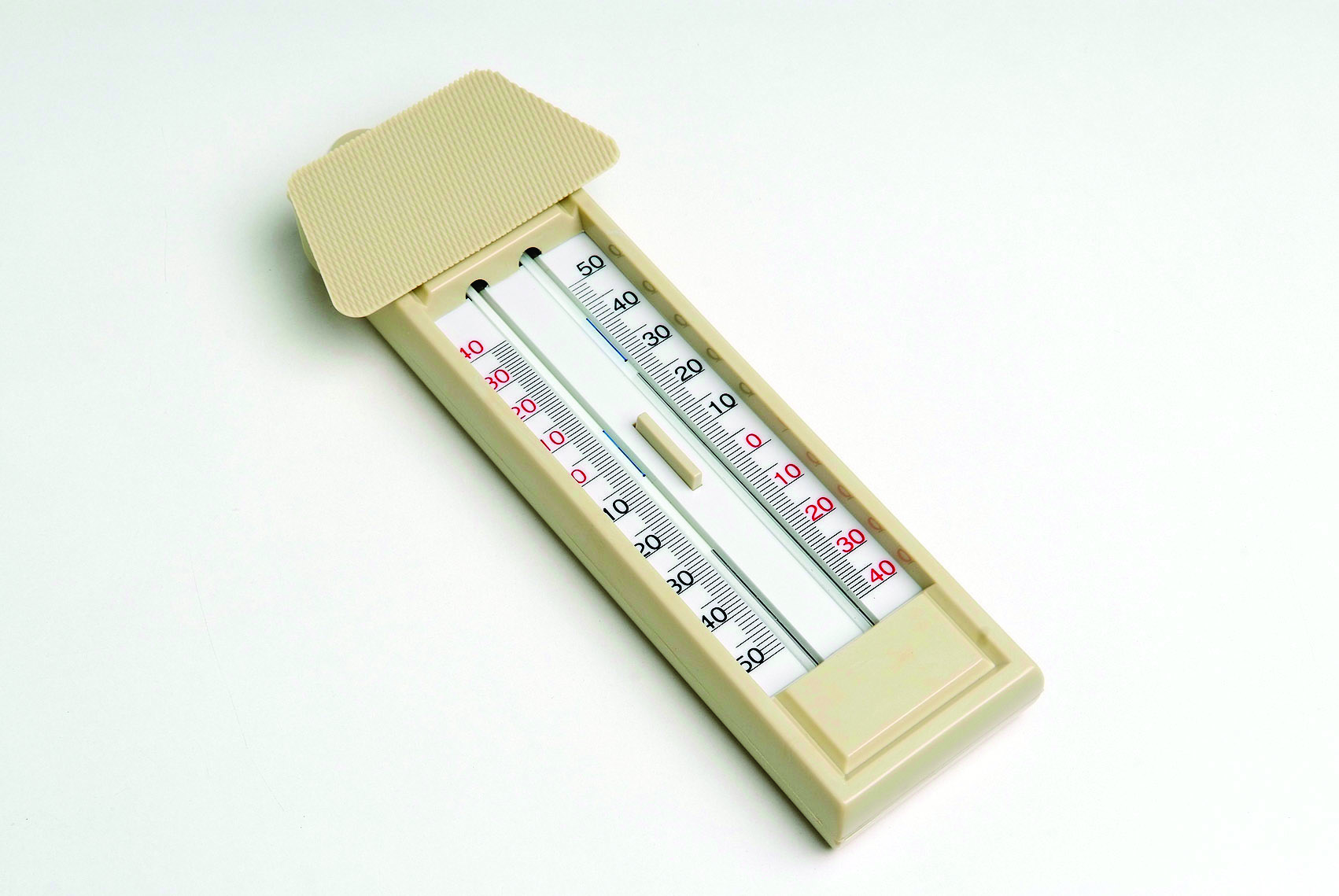 Termómetro de Máximas y Mínimas con tejado para evitar la suciedad procedente de niveles superiores.